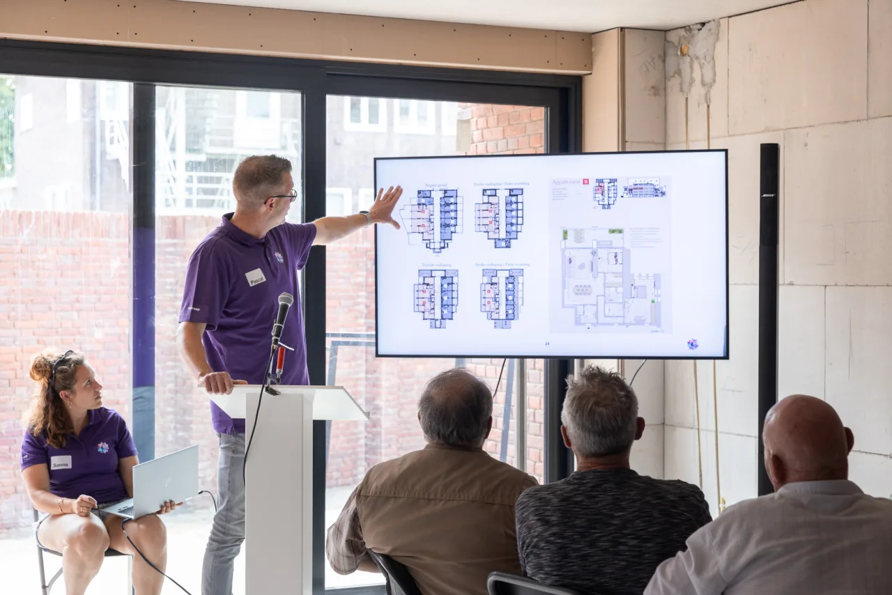 Meteen om 10.00 uur bij de start van de Dag van de Bouw kwamen de eerste bezoekers al een kijkje nemen. Onze collega’s waren ter plekke om bezoekers te voorzien van interessante informatie over het project. Bezoekers konden met eigen ogen zien hoe zoveel mogelijk van het oorspronkelijke gebouw, met name het karakter en de herkenbaarheid, overeind wordt gehouden bij het transformeren van dit stukje religieus erfgoed.