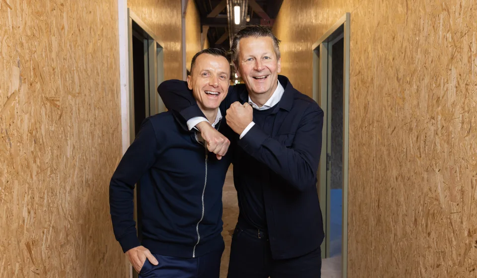 Sander van Doorn (Huybregts Relou) en Freek Boeijen (Focus on Impact) in het gerenoveerde TAC-gebouw.