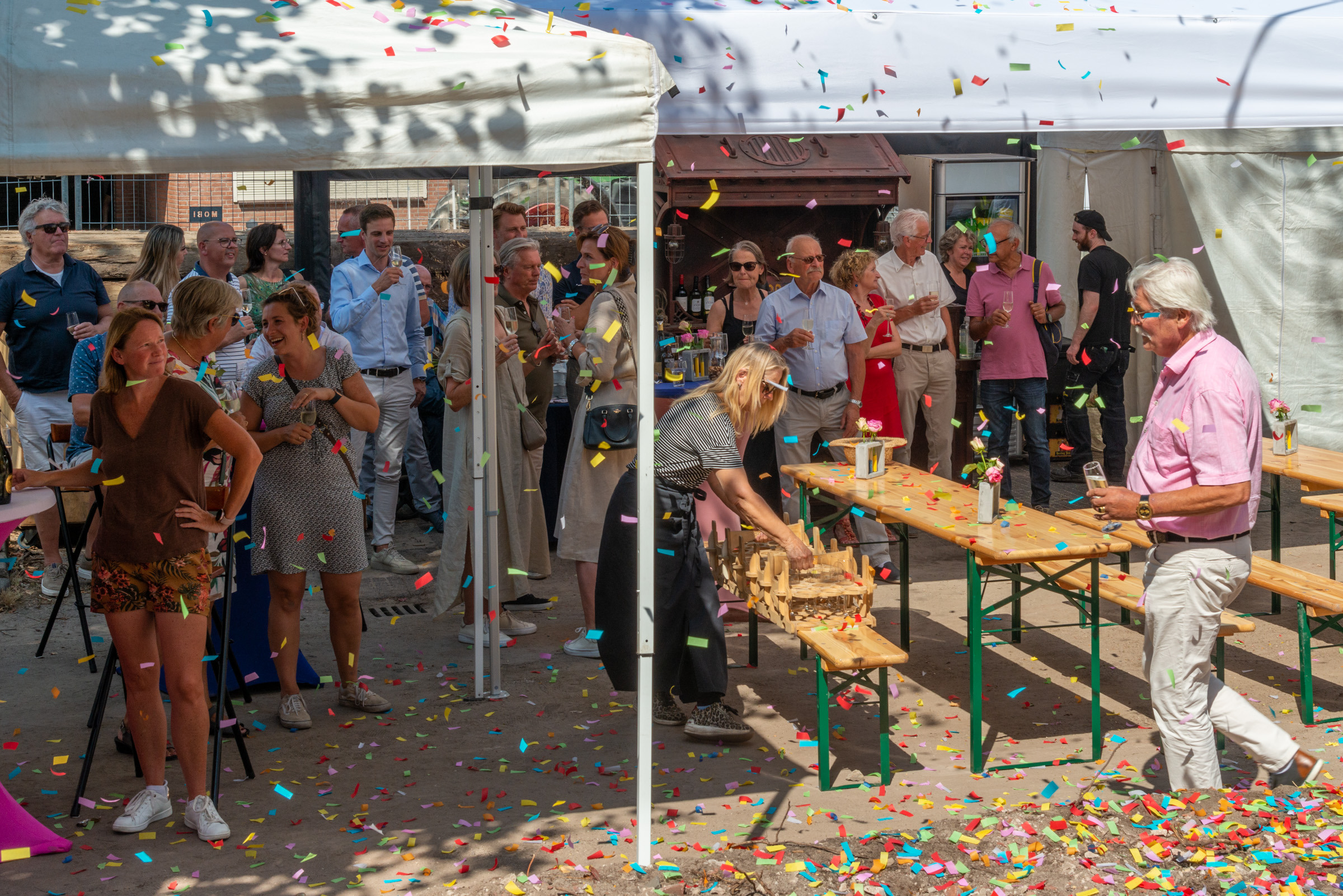 19 juli is, onder tropische omstandigheden, de start gevierd van de transformatie van de Antonius van Paduakerk te Valkenswaard. Eén van de toekomstige bewoners gaf het symbolische startsein. Met een druk op de knop ontvlamde op spectaculaire wijze het bord: “Proost op dit mooie project”. In deze voormalige kerk worden 18 luxe appartementen gerealiseerd.